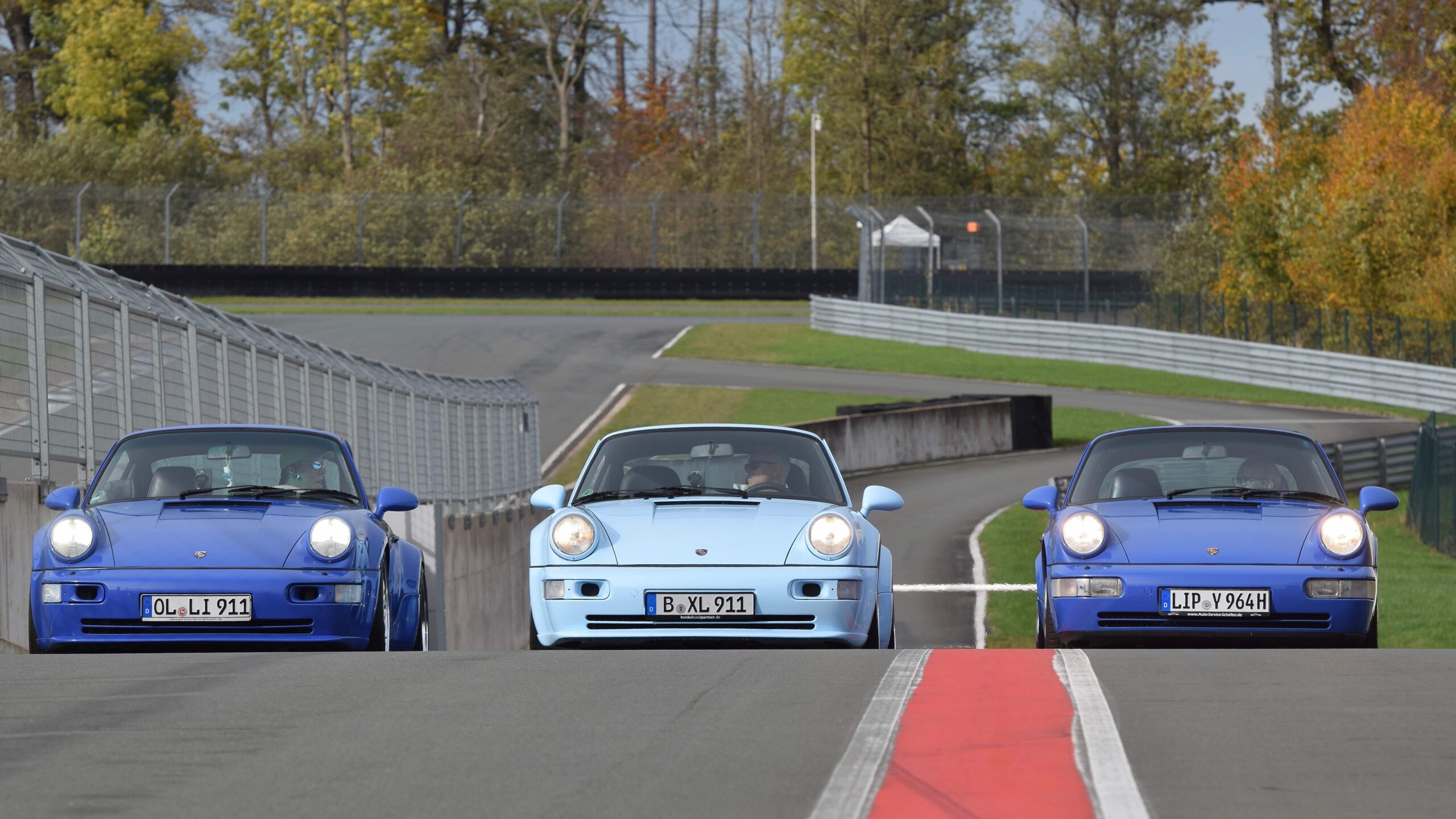 Das gilt auch für ein neu aufgebautes Exemplar in „Bentley light sky blue“. Plöger agierte bei diesem Projekt freilich nur als Berater seines Freundes Mark Henkel, dem ein besonderer Breitbau im Stil des RS 3.8 Coupés anno 1993 vorschwebte. Am BILSTER BERG feierte das dynamische Duo von der Spree ein schnelles Wiedersehen mit dem Teutoburger Wald und dem 4.2 Kilometer langen Rundkurs. Dem allgemeinen Farbklima angemessen: Hanns-Oliver Plögers Jubiläumsmodell „30 Jahre 911″ mit Modifikationen und einer Sonderlackierung in „Maritim-“Blau.