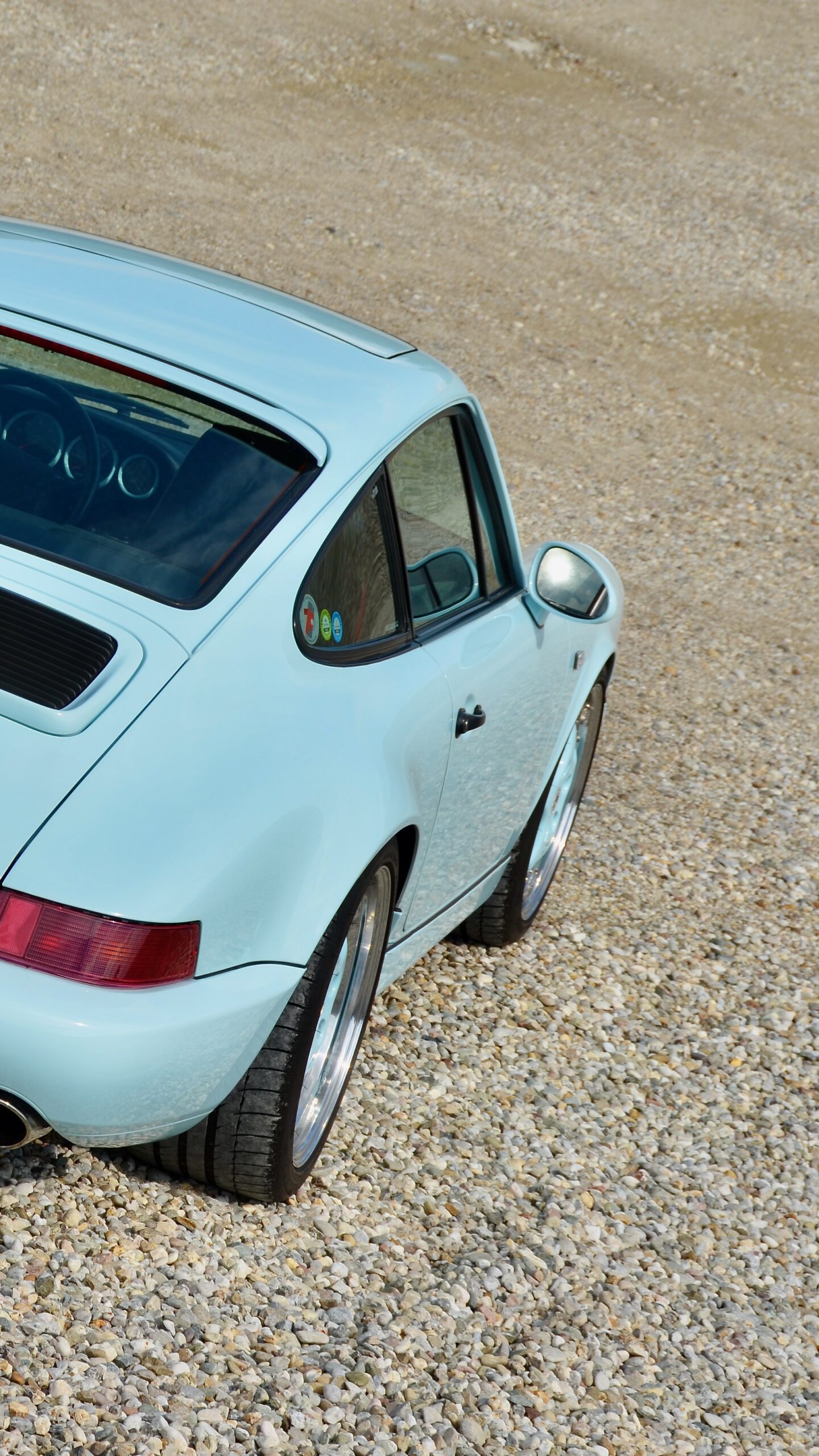 anfangs kannte ich ‚Coppaflorio’ als Farbe auf einem 964 C2 ab Werk überhaupt nicht. Auf Fotos eines österreichischen Autohändlers wirkte die Farbe wie ein schmuddeliges Weiß. Gleichwohl hatte dieses besondere ‚Babyhellblau’ mein Interesse bereits 2018 geweckt. Ich hatte das Fahrzeug einem guten Freund empfohlen, der den japanischen C2 mit ‚Tiptronic‘-Schaltung dann aber doch nicht vom damaligen Sportwagen-Sammler aus Österreich übernahm. Ursprünglich war dieser Serien-Sportwagen bereits 2016 aus Japan von einem deutschen Käufer zurück ins Land seiner Herstellung reimportiert worden.